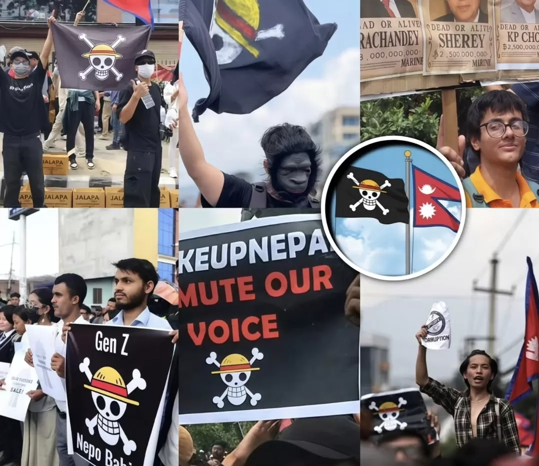 RIlNews — Dalam gelombang aksi yang dipimpin generasi muda di Nepal, simbol dari serial anime populer One Piece — bendera Straw Hat Jolly Roger — muncul sebagai emblem utama demonstran. Bendera bergambar tengkorak bertopi jerami itu menjadi penanda visual perlawanan, sekaligus ikon kebebasan yang dipilih kaum muda untuk menuntut reformasi politik, transparansi, dan kebebasan berekspresi.